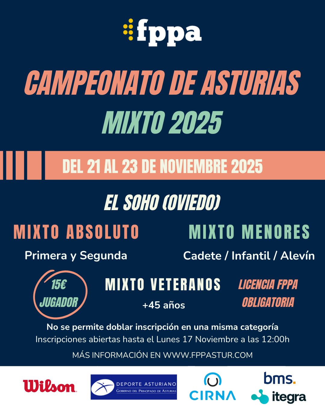 Inscripción15€ categoría única / 25€ dos categorías €